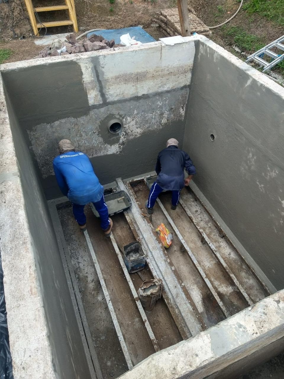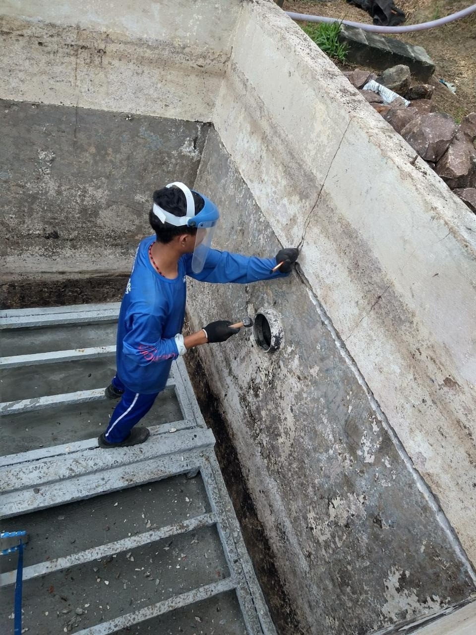 Serviós de reforma de caixa de tratamento na empresa flex no distrito indústrial.